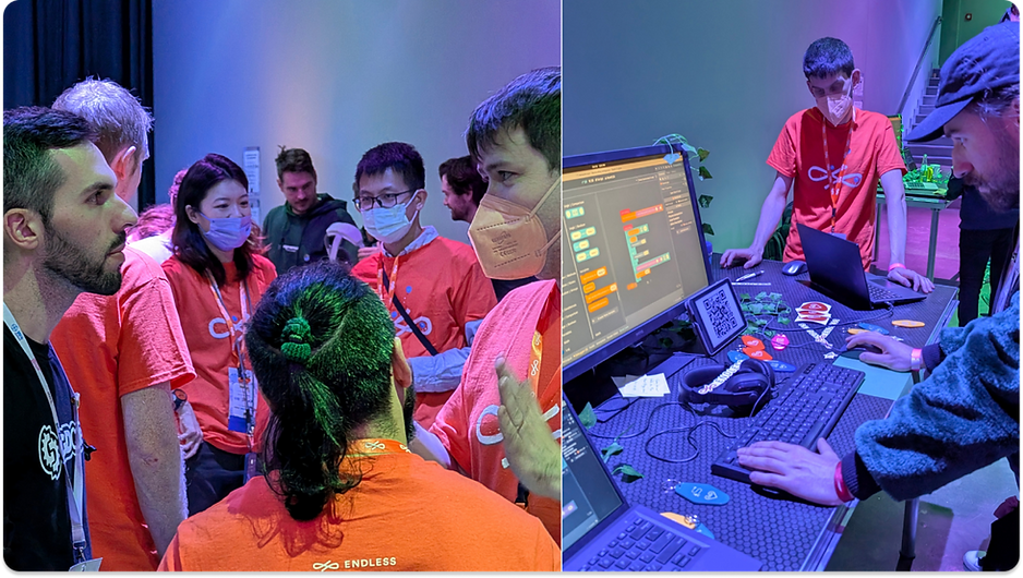 Además de la emoción por el Block Coding, aprovechamos la conferencia para conocer mejor el mundo del desarrollo indie y conversar sobre la creación colaborativa de juegos, un tema que nos apasiona en Endless y que seguiremos impulsando.