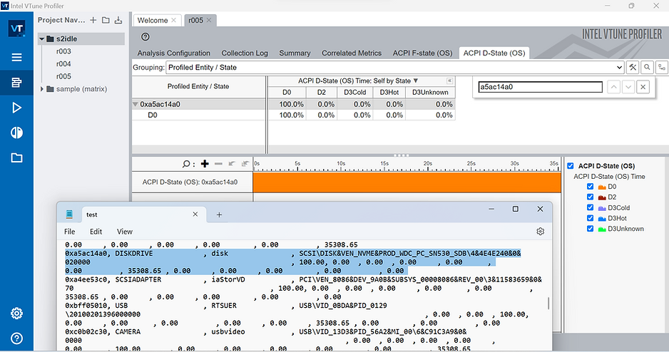 Analizamos y descubrimos que Linux apagaba completamente el disco en ese modo sin VMD, lo que tiene sentido para ahorrar energía. Pero luego no lograba volver a encenderlo. Al usar herramientas de depuración avanzada, observamos que Windows no apagaba el disco durante la suspensión.